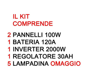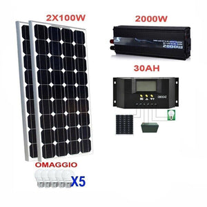 Kit Fotovoltaico 2 KW Pwm Inverter 2000W Pannello Solare 200W reg 30 amp CAMPER