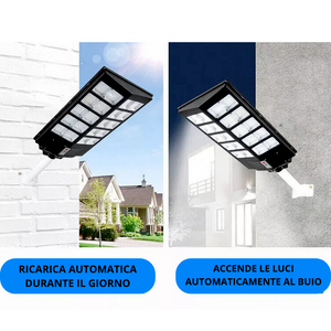 LAMPIONE STRADALE LED 1500 W CON PANNELLO SOLARE TELECOMANDO CREPUSCOLARE FARO